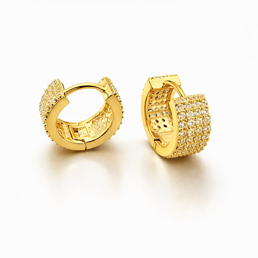 Luminosi e sofisticati, questi orecchini a cerchio sono realizzati in acciaio inossidabile di alta qualità. Il design è impreziosito da una lavorazione pavé brillante che cattura la luce e dona un effetto glamour e raffinato. Compatti ma d’impatto, sono perfetti per valorizzare sia look quotidiani che outfit più eleganti. La chiusura a scatto garantisce una tenuta sicura e confortevole. Resistenti all’acqua, non anneriscono e mantengono la loro brillantezza nel tempo.