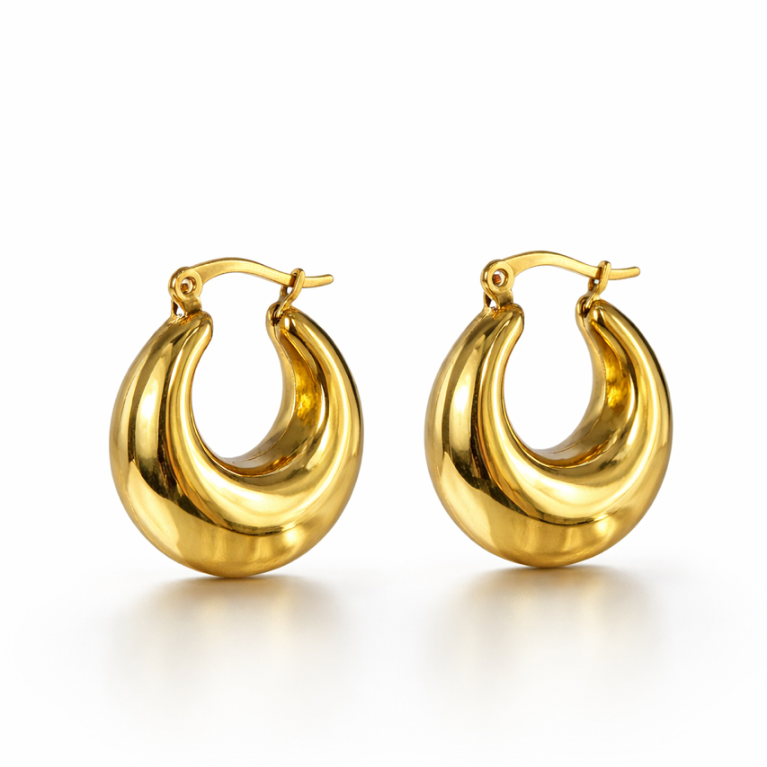 Decisi e luminosi, gli orecchini a cerchio sono realizzati in acciaio inossidabile di alta qualità. Il design bombato e avvolgente crea un effetto moderno e sofisticato, senza rinunciare all’eleganza. La chiusura a scatto garantisce praticità e una tenuta sicura. Resistenti all’acqua, non anneriscono e mantengono la loro brillantezza nel tempo.