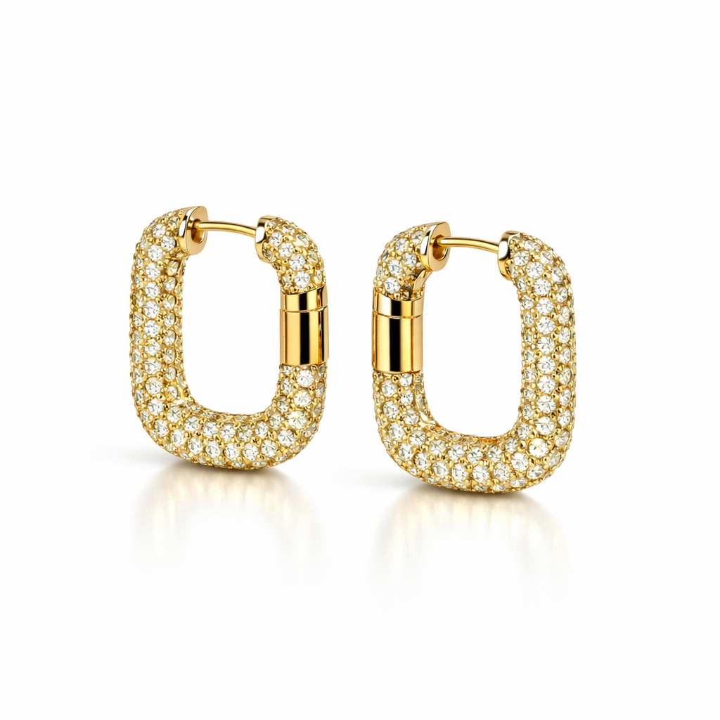 Luminosi e sofisticati, questi orecchini rettangolari in acciaio inossidabile sono impreziositi da una pavé di zirconi scintillanti che catturano la luce ad ogni movimento. Il design moderno e strutturato dona un tocco di eleganza contemporanea, perfetto per valorizzare sia look quotidiani che outfit più raffinati. Realizzati in acciaio inossidabile di alta qualità, garantiscono resistenza, durata e brillantezza nel tempo. La chiusura sicura assicura comfort e stabilità per un utilizzo quotidiano.